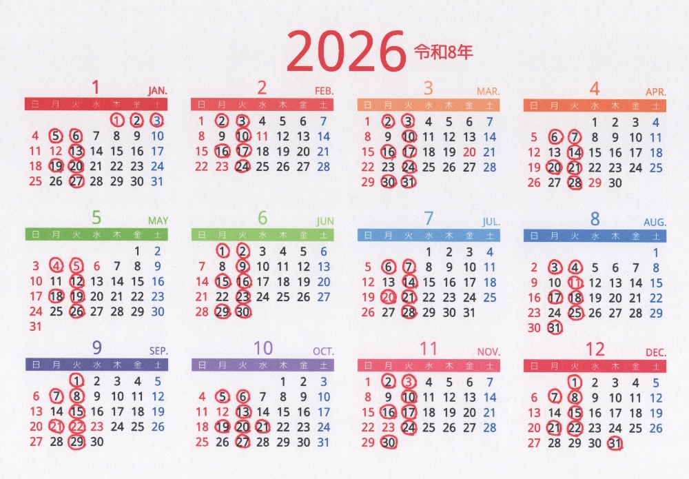 年末年始の営業につきまして、下記の通りご案内いたします。